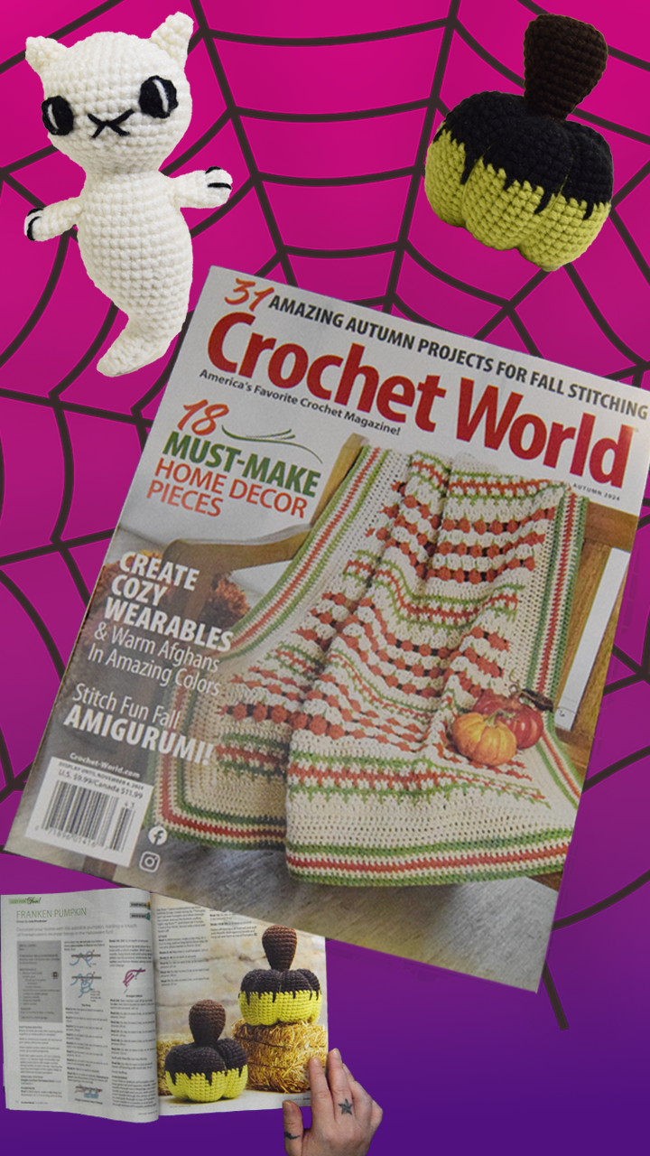 Grab the Autumn 2024 copy of Crochet World to check out these 2 adorable patterns! The Ghost Cat glows in the dark!
